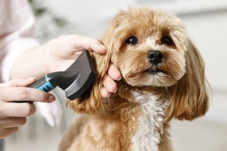 Entfernen von kleinen Verfilzungen und Auskämmen überschüssiger Unterwolle.